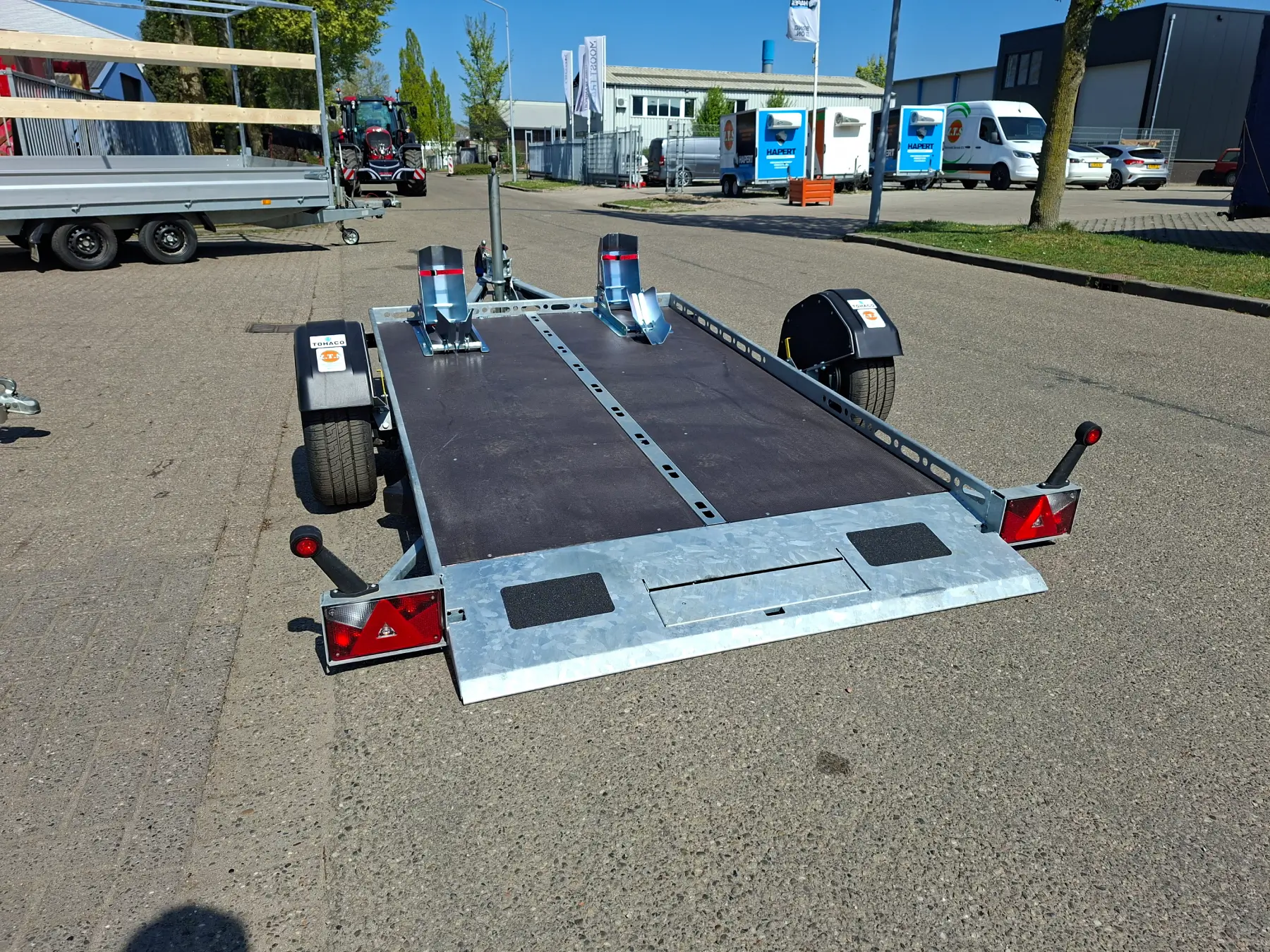 Tohaco trailers bieden een breed scala aan mogelijkheden voor het vervoeren van diverse ladingen, variërend van auto’s en motoren tot verschillende soorten apparatuur/machines. Met speciaal ontworpen trailers en motortrailers kunnen ze verschillende afmetingen en gewichten aan, met opties voor open trailers voor voertuigen en gesloten trailers voor het overdekt vervoeren van apparatuur. Deze veelzijdigheid maakt Tohaco trailers een betrouwbare keuze voor verschillende transportbehoeften, waarbij zowel de veiligheid als de bescherming van de lading centraal staan.